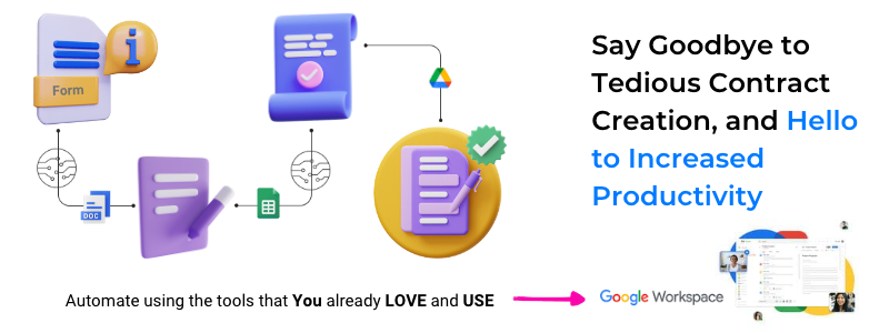 You don’t need development skills to generate documents automatically. You can achieve this through simple, yet powerful Intake Forms using the tools that you already LOVE and use daily, like Google Workplace products (Gmail, Forms, Sheets, and Drive).
